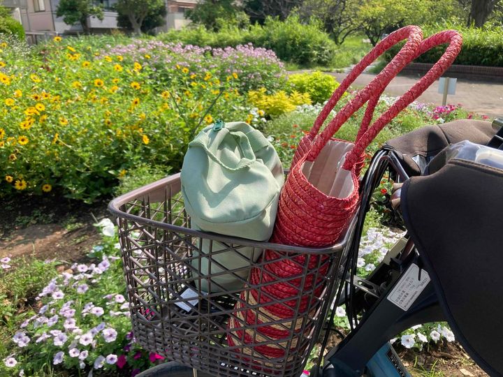 ベランダピクニックに味をしめて、今度は自転車で買い物に出かけるときも椅子を持参しました。店に向かう途中の多摩川河川敷で、ソロキャンプならぬソロピクニックをしようと考えたのです。持ち物は、椅子と水筒と読みかけの本のみ。自転車のかごにも余裕で納まります。