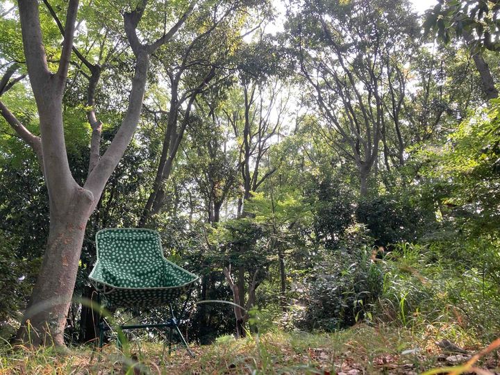 朝イチの公園もおすすめ。夏休みに入ったある日、子どもとよく行く近所の森林公園に出かけました。朝の公園は人が少なく、空気も澄んでいて気持ちがいいもの。椅子を置いて、大木の下で本を読んでいると、小鳥のさえずりが聞こえます。備えつけのベンチもあるけれど、自分の椅子ならお気に入りの場所を自由に選べるし、太陽の動きに合わせて、直射日光が当たらない位置に移動できるのも利点です。