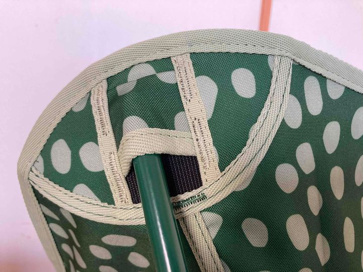 コンパクトなサイズながら、大人が座ってもグラグラしない抜群の安定感です。さらに、小さく折りたためて、専用ケースに入れると持ち運びもラクラク。レトロな雰囲気のおしゃれなデザインも気に入って、購入することにしました。