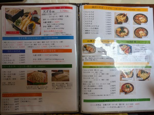 天ざるを始め、冷たいそばや温かいそば、季節限定メニューなどたくさんの品数にワクワク。
