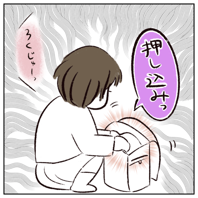 そして、クローゼットから持ち出した洋服をランドセルの中にググッと押し込むさなかちゃん。
