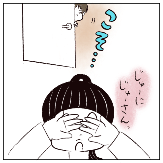 「お友達を入れていいのはこの部屋だけ」というルールにしている家庭はよくありますよね。「この部屋だけ」という約束で始まったまるさんとさなかちゃんのかくれんぼ、何事もなく無事に終わりますように。