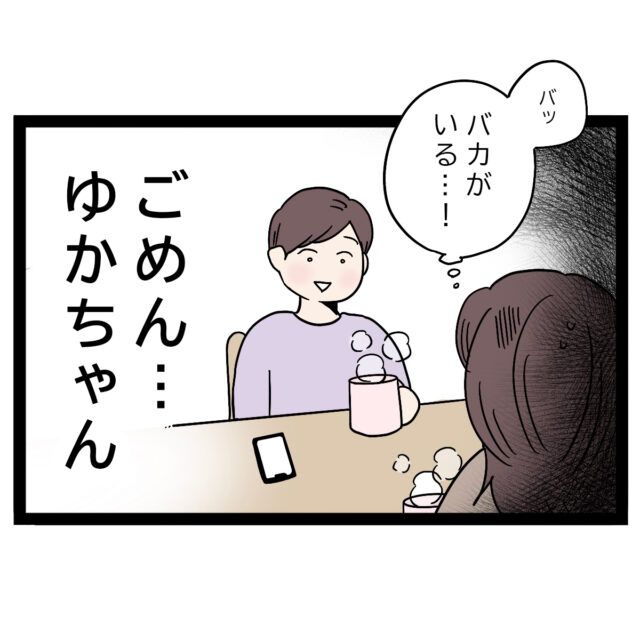 その姿を見た雅美さんは「バ、バカがいる・・!」と冷静に考えていました。そしてまさひでさんに呆れつつ、「ごめん・・ゆかちゃん・・」と心の中で呟きながらゆかちゃんに謝りました。