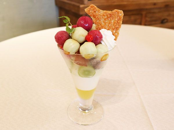 濃厚な果汁感が特長のアイスの実と、旬のぶどう、マスカルポーネチーズが相まって、さっぱりと食べられます。