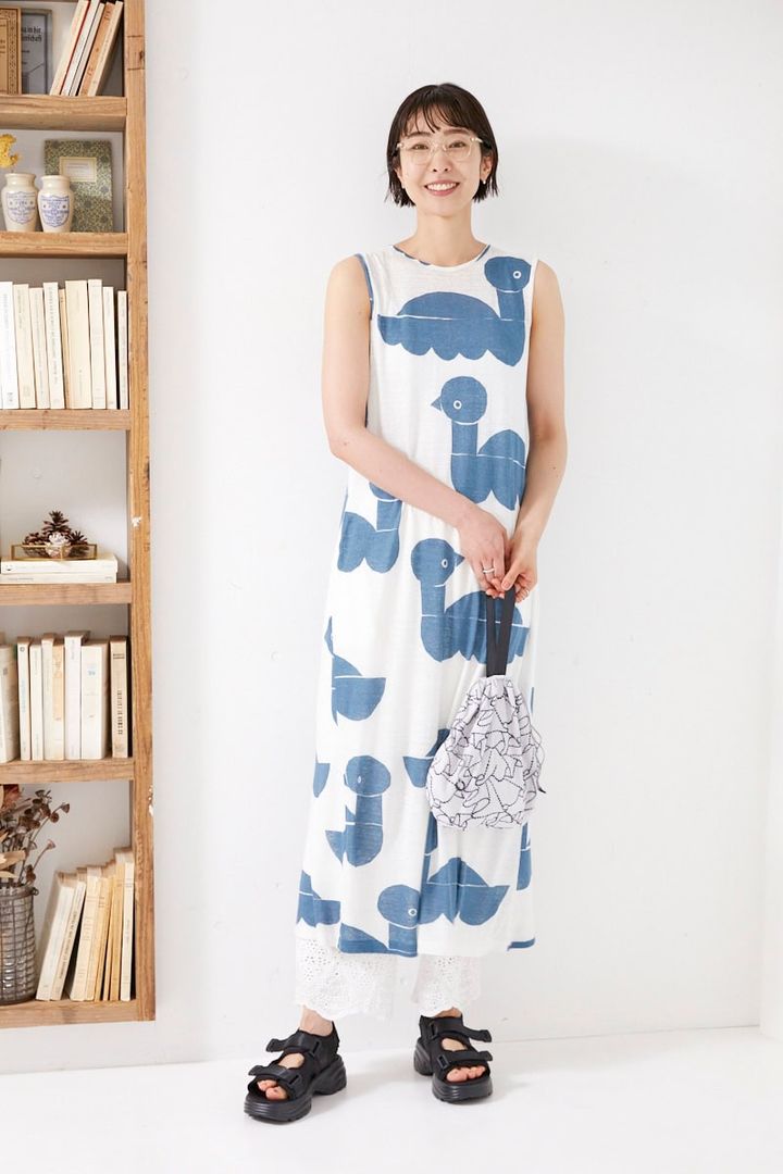 「暑い時期は、大胆な柄も着こなしたくなりますよね。中にはリブラキューのインナーパンツを。透け感のあるワンピースを選ぶことが多いのでとっても重宝しています」