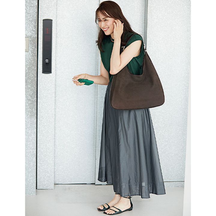 久しぶりのフレアシルエットが高揚感を高めてくれる。歩くたびにシアースカートのスリットから裾寸違いのサテンがのぞいて表情豊かに。見た目にも涼やかで、まだまだ続きそうなノースリカットソーやサンダルなど夏ベースオシャレを無理なく、最大限盛り上げてくれます。ノースリーブ¥31,900(ドゥロワー/ドゥロワー 二子玉川店)スカート¥35,200(エーケー ワン/ビームス ハウス 丸の内)バッグ¥89,100(マイケル マイケル•コース/マイケル•コース カスタマーサービス)サンダル¥37,400(ピッピシック)ピアス¥44,700ネックレス¥179,000リング¥147,400(すべてトムウッド/トムウッド 青山店)