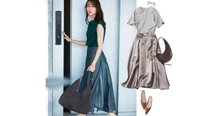 まだまだ厳しい残暑が続く9月。そこで体感温度は上げずに、盛夏にはないきちんと感をだした通勤コーデをご提案。女っぽさもある艶スカートがあれば、簡単にオシャレを更新できちゃいます!