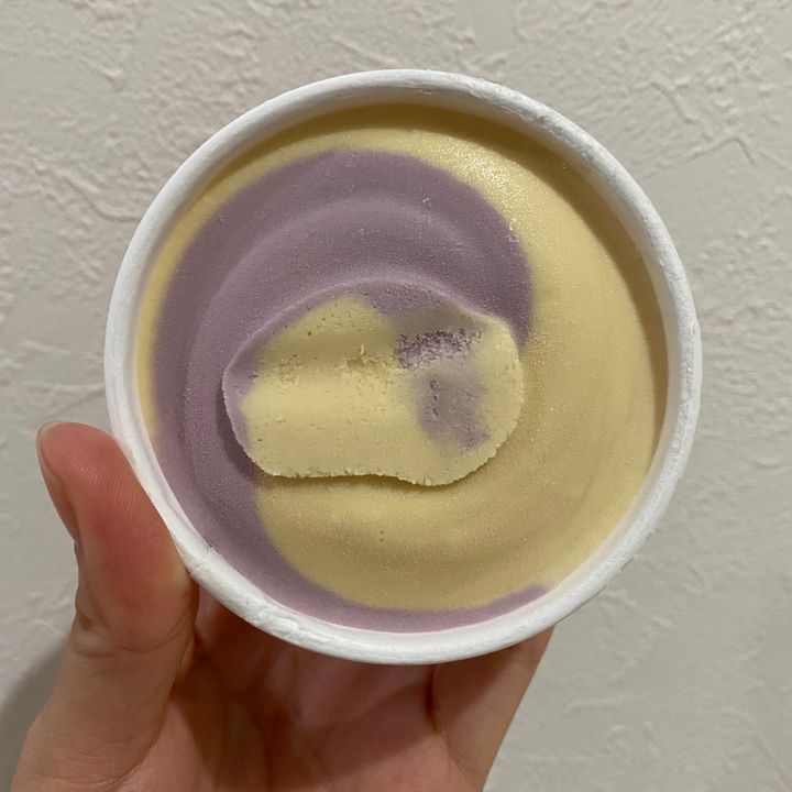 彩芋は、紅はるかとアヤムラサキを100%使った、2種類のお芋が堪能できるアイスクリーム🍠