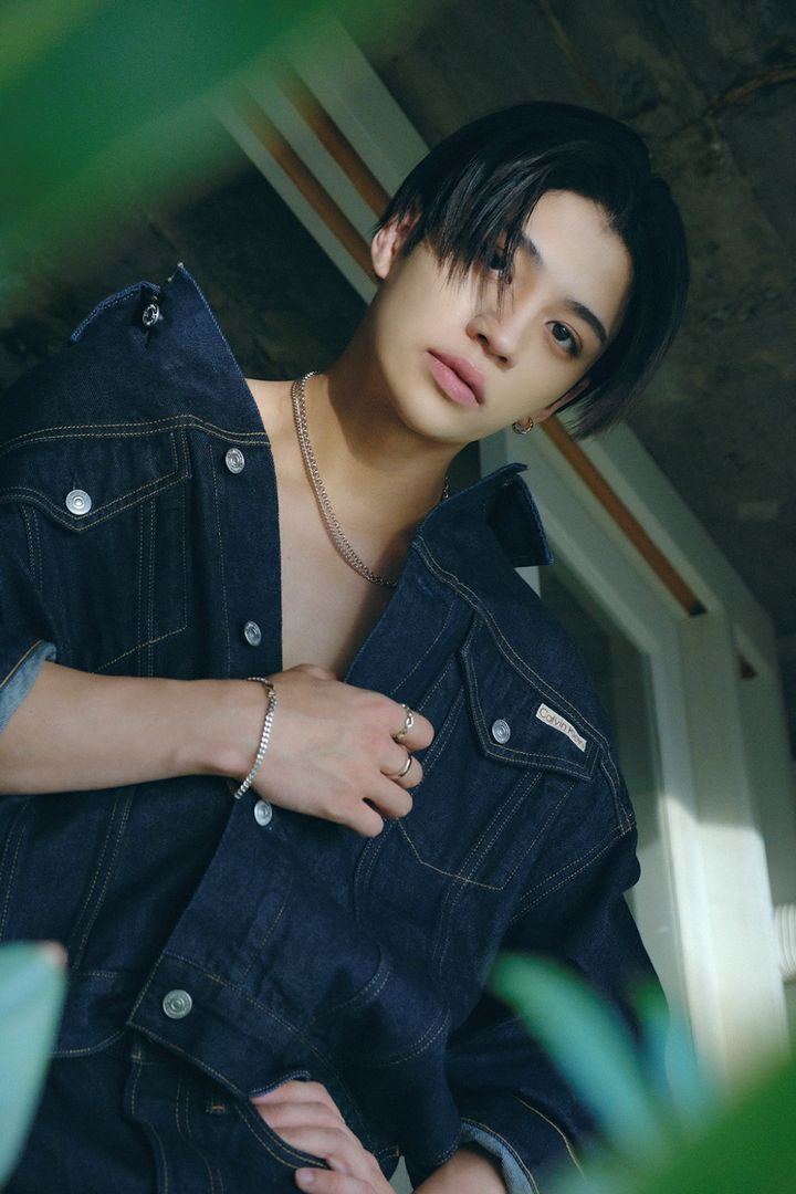 ピアス¥14,300[片耳用]、重ね付けしたネックレス(上)¥19,800、ネックレス(下)¥19,800、ブレスレット¥17,600、人差し指リング¥19,800、中指リング¥11,000、(すべて4℃ HOMME +/(株)エフ・ディ・シィ・プロダクツ)、デニムジャケット¥30,800、デニムパンツ¥38,500(共にカルバンクライン ジーンズ/カルバンクライン・カスタマーサービス)