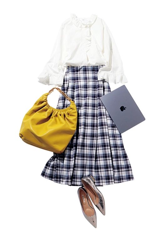 甘さ控えめの白ブラウスが好印象♡チェックスカートとつくるフェミニン通勤コーデ【毎日コーデ】