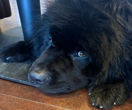 お店に入るとすぐに、とってもかわいいニューファンドランドのワンコがお出迎えしてくれます。 この日の看板犬はエマちゃん。