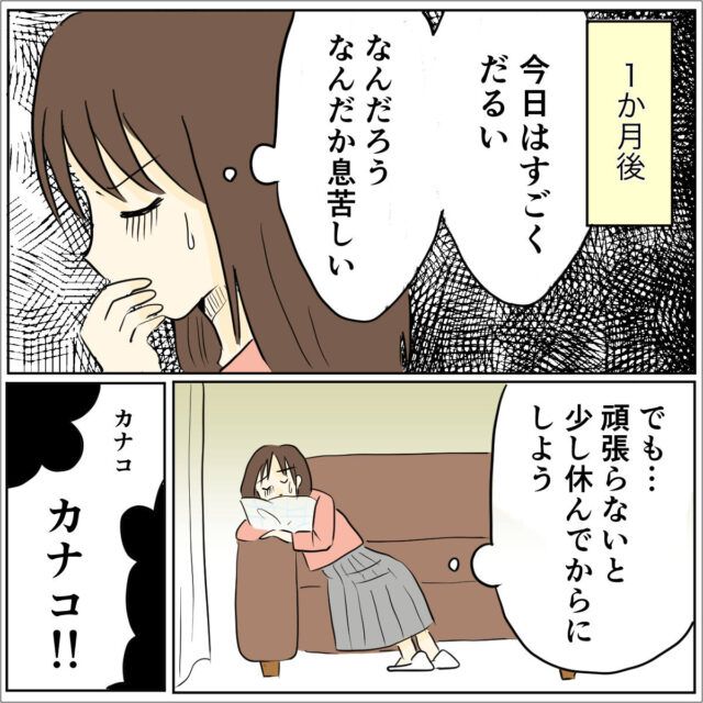 そうして1ヶ月が過ぎた頃、ある日突然息苦しさに襲われました。今日はすごくだるい。それでも頑張らないと。思っても体が思うように動かないので、少し休んでからにしようと座ると、どうやらそのまま寝込んでしまったようでした。