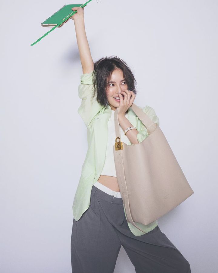 バッグ「ロウキー・ホーボー MM」¥588,500バングル¥118,800(ともにルイ・ヴィトン/ルイ・ヴィトン クライアントサービス)シアーシャツ¥24,200(クラネ/クラネデザイン)ニットタンクトップ¥7,590(ココ ディール)パンツ¥7,920(シテン/ユナイテッドアローズ カスタマーサービスデスク)