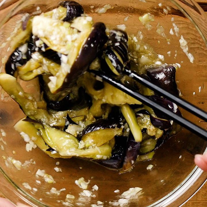 なすが温かいうちに調味料と和えることで味がよくなじみます。