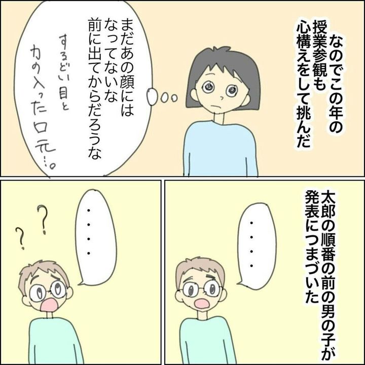 この授業参観でも太郎くんのあの顔を見ることになるのだろう…と思ったまゆんさん。いよいよ次は太郎くんの番ですが、発表することはできるのでしょうか…。