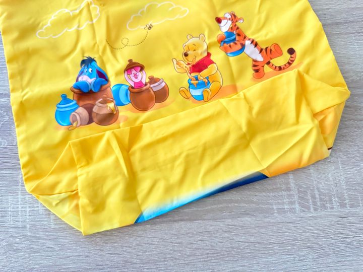 「プーさん」とお揃いのイエローカラーをベースに、表にははちみつポットを持った「プーさん」、裏には「イーヨー」「ピグレット」「ティガー」たちも描かれた今回だけの特別なデザイン🍯