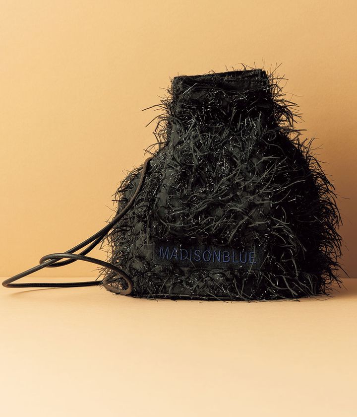 モケモケが大好きなので目を引かれました。デニムにさらっと持ちたいですが、巾着バッグなので、パーティシーンにも使えそうです。