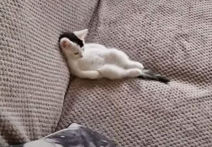 おっきいソファを独り占め! くつろぎっぷりが可愛い子猫さん。