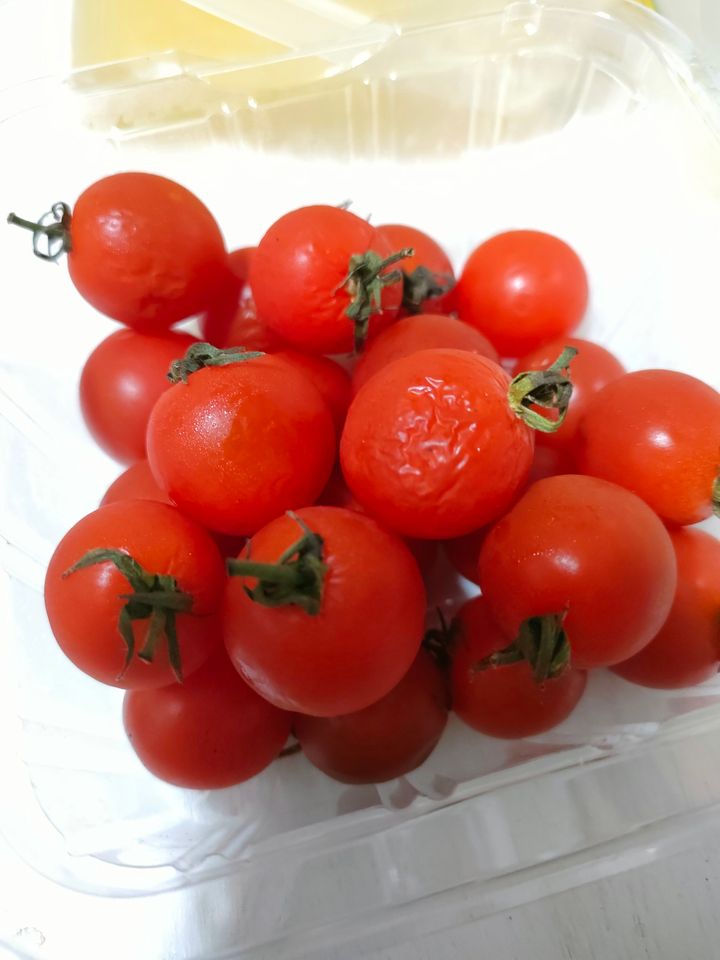 原因は、プチトマトから水分が抜けてしまったので、しわしわになったので