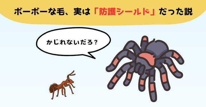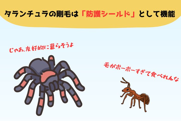 それが「タランチュラの剛毛は掃除屋のアリから身を守る防護シールドである」というものでした。