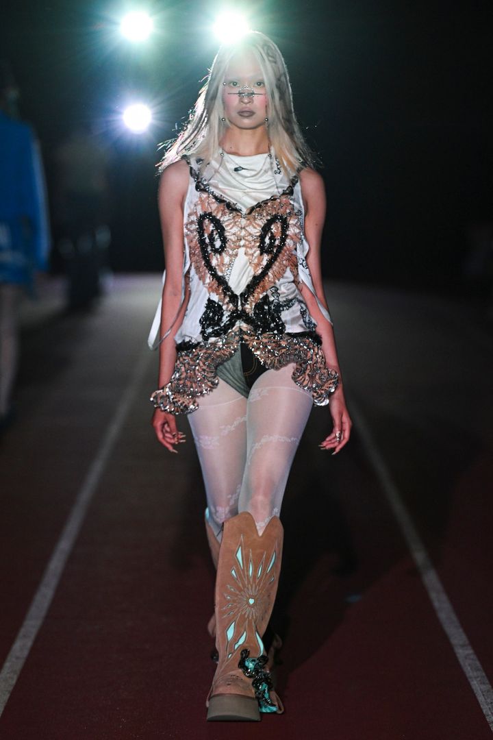 3. ユェチ・チ、“鉄鋼”を着想源にクチュールとスポーティのMIXスタイルを提案。アグとのコラボブーツも話題に。【2025年春夏 東京コレクション】