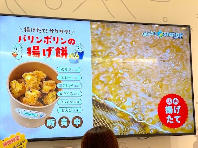 続いて、新潟県発の米菓メーカー・栗山米菓がお届けする新業態店舗「ばかうけSTATION 新潟せんべい王国」も必見! 老若男女に愛される「ばかうけ」をはじめ様々な商品が並んでいます。おすすめは、店内キッチンで揚げられたできたての「揚げ餅」(1,100円)。揚げたてをいただけるだけでもうれしいのに魅力は好きな味付けを6種類から選べること! そのフレーバーも新潟らしい味付けを意識していて記念にGOOD! 特にタレカツ、のどぐろは記念になること間違いなし!