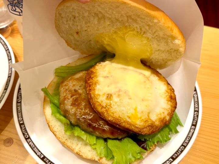 肉厚なハンバーグにシャキシャキのレタス、しっかり焼かれたエッグオムレツ、そして、コメダならではのふかふかバンズとオリジナルソースの組みあわせは至福の味わい! 食べれば食べるほどに食欲が増してくる、そんな一品です。