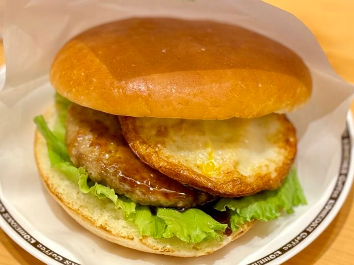 食べると、これまたジューシーなハンバーグに、とろみ控えめのてりやきソースやエッグオムレツが絡みあい、おいしさ満点! ふかふかでほんのり甘いバンズやコメダならではのボリュームも健在です。他のファストフード店のてりやきと比べると、てりやきのとろみが控えめであっさりした味わいが特徴です。