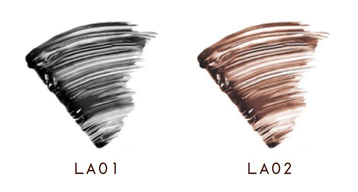 瞳を引き立てるナチュラル系ブラックの「LA01 トゥルーブラック」と、やわらかなココアブラウンの「LA02 アッシュブラウン」の2色は、どちらも自まつ毛の美しさを引き立てる透明感のあるカラー。年代を問わずに使いやすい色みです。