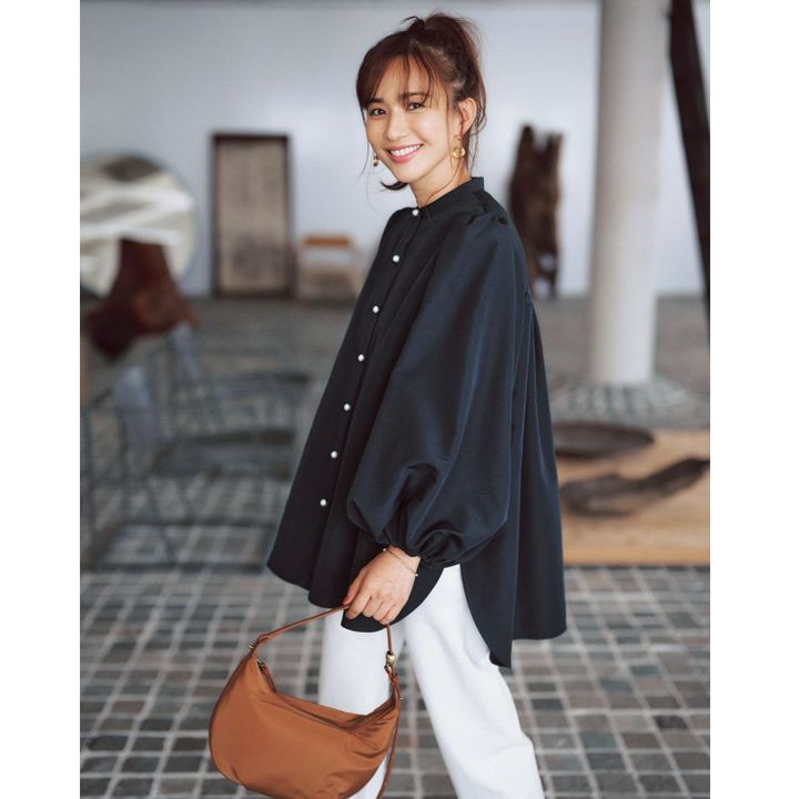 肉厚でハリ感のある長袖ブラウスなら 秋冬の送迎コーデに活躍。 ボリュームシルエットが今っぽい