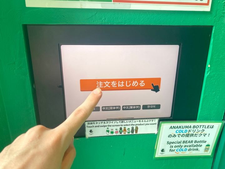 まずオーダーは入口から向かって左側にあるタッチパネルで行います。