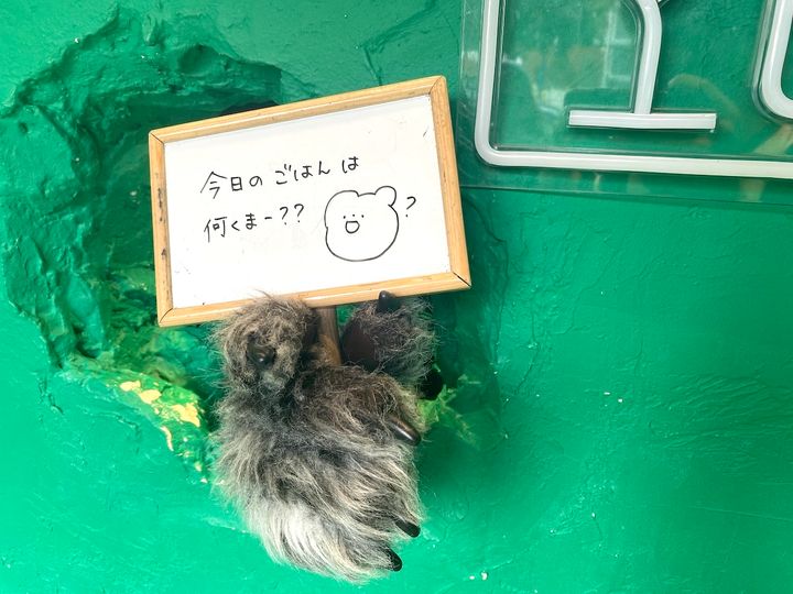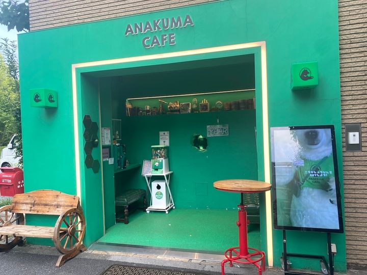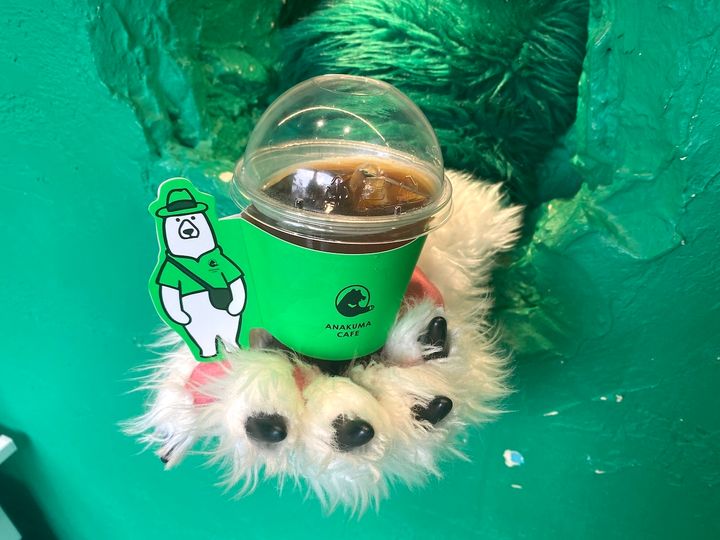 「ANAKUMA CAFE」は体験型のテイクアウトカフェ。コンパクトな店内の壁に空いている小さな穴からクマがフードやドリンクを手渡してくれるんです! お店で働くクマは現在7頭いて、ランダムで接客してくれます。何度も訪れて推しのクマを見つけるもの楽しそうです。