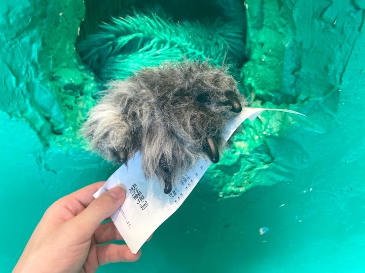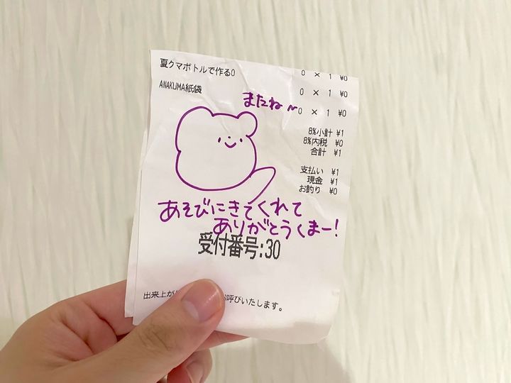 クマがモフモフの手をニョキっと出して待ってくれているので、やさしくレシートを渡します。