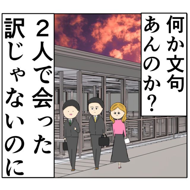 「何か文句あんのか?2人で会った訳じゃないのに」すみれさんは、ふり子さんにそう言われているような気がしました。なぜなら、すみれさんが目撃したのは良し男さん、ふり子さんだけでなく、もう一人男性が一緒だったのです。