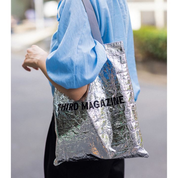 サードマガジンのシルバーのサブバッグで、小物から自分らしさを取り入れます。ハイブランドより好感度が高いのも◎。