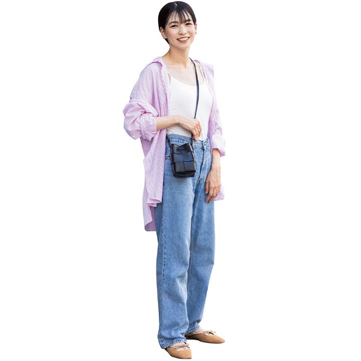 授業参観や親子遠足などの園行事を経て、他のママたちの雰囲気が見極められてきたのでこの夏からデニムを解禁!ストライプシャツを羽織ることで、カジュアルすぎないように絶妙バランスを維持しています。