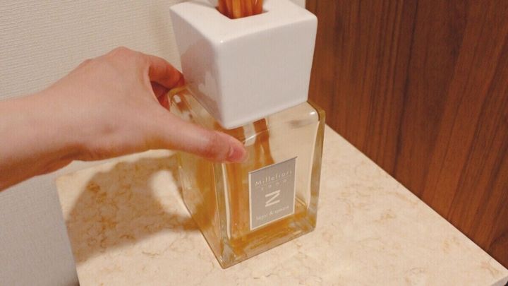 地震対策とあるため、さっそく重いルームフレグランスの底に貼ってみました。ガタガタ動かなくなるので、転倒防止したいインテリアグッズの固定にぴったりです。 そして、置き場所を変えたいときははがしてまた使えるという優れもの。