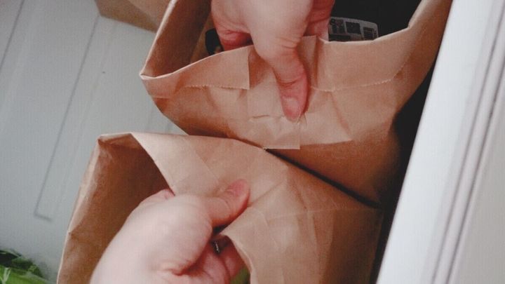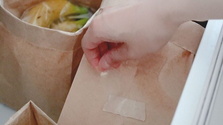 野菜室で使っているセリアの食品用ガゼットバッグ。バッグとバッグがずれないようにクリップでとめているのですが、このテープを貼って固定してみました。