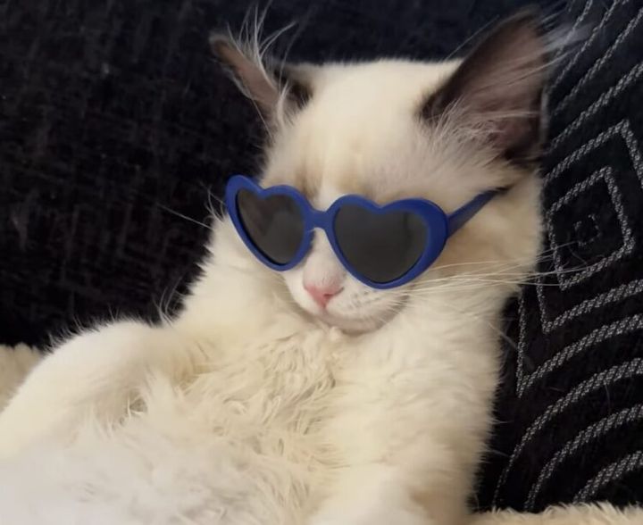 部屋にいても暑いなぁ。 サングラスと風で、気分だけでも涼しくなる?