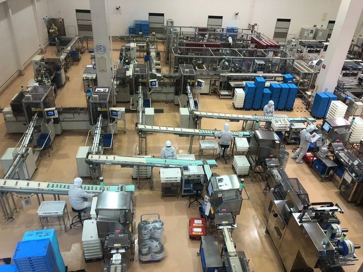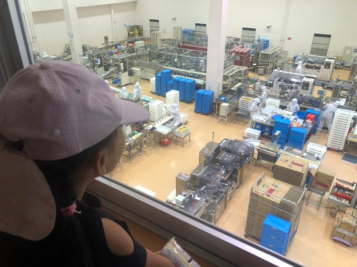2階では、上から包装ラインを見ることができます。ただ、なんとなく見ているだけでも面白いのですが、コンシェルジュの方と一緒だと、より深く見どころを抑えて楽しむことができますよ。