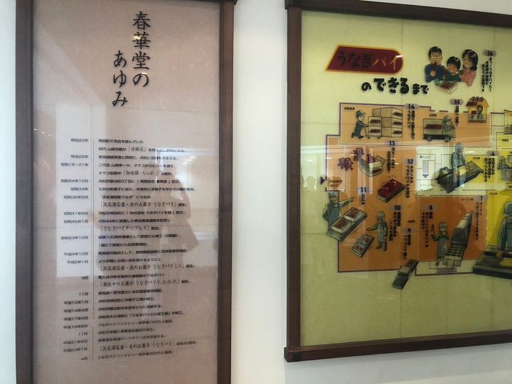 会社の歴史についても展示されています。うなぎパイを製造・販売しているのは春華堂という会社なのですが、はじまりは甘納豆というのが意外ですよね。
