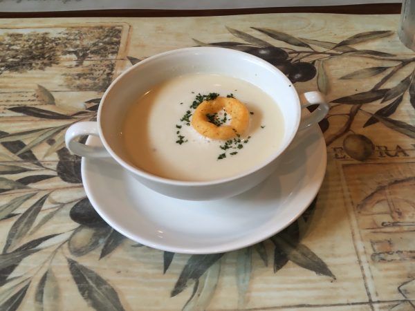まずはスープ。訪れた日は猛暑日で、この日はさつまいもの冷製スープでした。