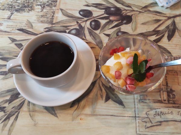 そんな訳でコーヒーはセルフ(お一人様カップ一杯)、初めてのお客様でも何となく流れに任せて。タイミング良くデザートも運ばれてきました。