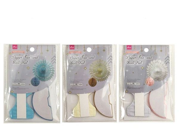 「ペーパーファン」は、円形でお花のような飾りです。ダイソーのペーパーファンは、広げてひもで吊るすだけでセンスの良い誕生日飾りが叶います。大・中・小とサイズの異なる3つがセットになっているため、バランスの良い飾り付けが可能です。