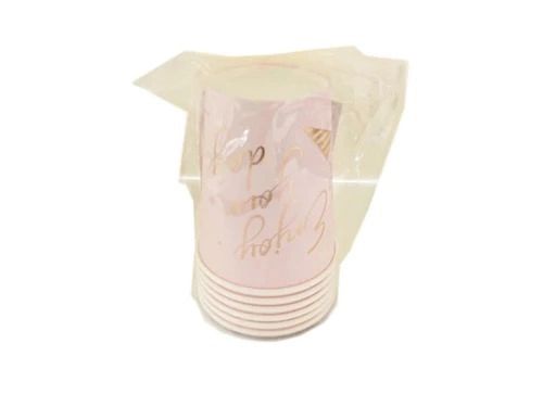紙コップもホームパーティーで重宝するアイテムです。ダイソーの「紙コップ」で誕生日パーティーにおすすめなのは、こちらの薄いピンク地にゴールドの英文字が入った煌びやかなデザイン。