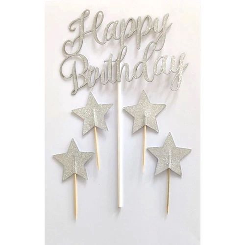 ラメ入りのキラキラとした星と、英文字の“HAPPY BIRTHDAY”がセットになった「ケーキトッパー」。ケーキにさすと高さが出て、一気にケーキが豪華になります。