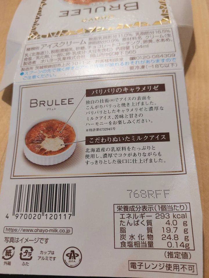 今回私がどはまりしたアイスはオハヨ-乳業さんのBRULEE(ブリュレ)です。
