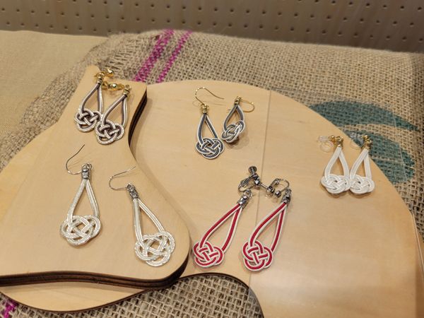 今回開催される「伝統工芸『水引細工』手作り体験」では、アップサイクル水引と秋色カラー水引を使って“ あわじ結び”。キーホルダー2つまたはピアス左右1組を作ります。