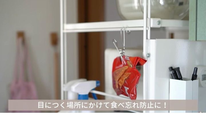 また、クリップとして食べかけのお菓子を保存するのにも使えます。食べ忘れのないようにフックを使ってつるしておくことも可能です。