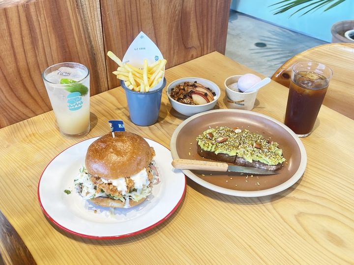 根強いファンに愛されている「Baby J’s」自慢の肉厚バターミルクフライドチキンに、酸味が利いたコールスローと自家製ソースを合わせ、大きなバンズで挟んだバーガーは食べごたえバッチリ。バンズは「Parket」で焼いたものを使用しています。